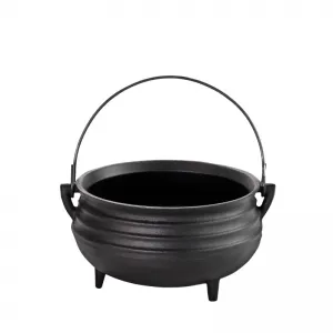 Caldeirão tripé sem tampa apresenta um design em ferro fundido que proporciona aquecimento uniforme.