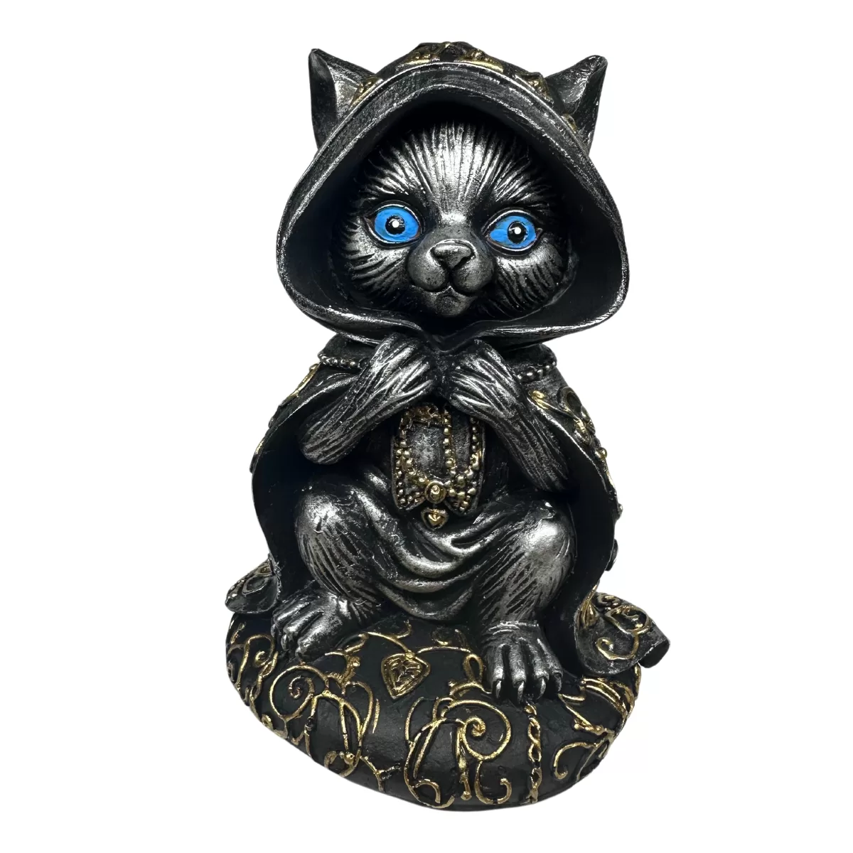 A estatua gato bruxo é uma peça de decoração única e elegante que é perfeita para qualquer fã de bruxaria e magia.