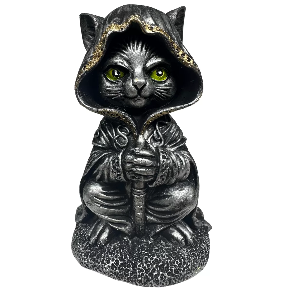 A estatua gato bruxo é uma peça de decoração única e elegante que é perfeita para qualquer fã de bruxaria e magia.
