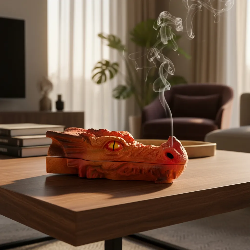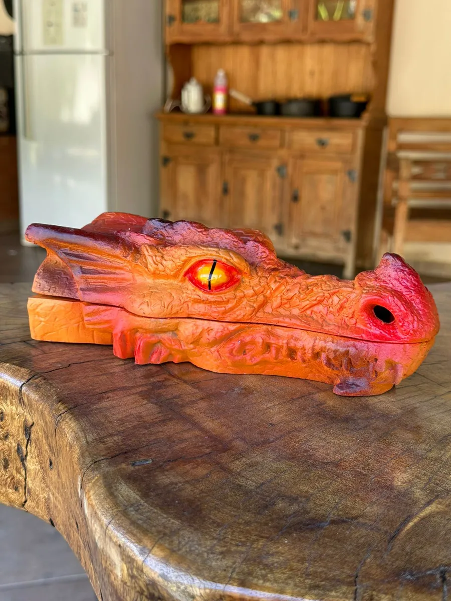 Incensário Cabeça Dragão Horizontal Vareta Laranja