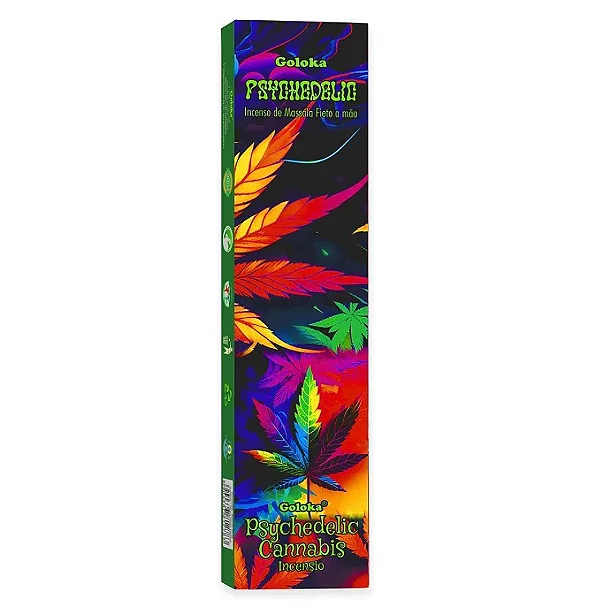 O Incenso Goloka Psychedelic Vareta – Cannabis é uma opção única e intrigante, com um aroma inspirado na fragrância da cannabis. Este incenso é produzido artesanalmente na Índia, utilizando ingredientes naturais como massala, resinas e óleos essenciais, garantindo uma queima uniforme e prolongada. Seu perfume é suave e envolvente, ideal para criar um ambiente de relaxamento, introspecção e bem-estar.