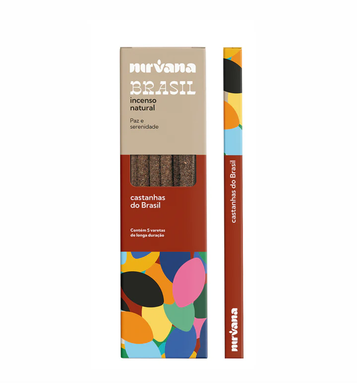 | Composição | Blend terapêutico Nirvana (mix de resinas naturais, ervas, óleos essenciais e especiarias), varetas de bambu, pó de madeira, aglutinante, essência, castanha do brasil. |