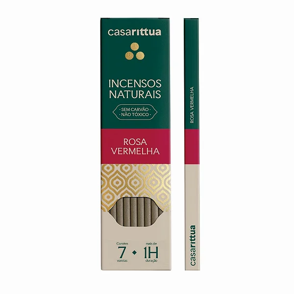 O Incenso Natural Casa Rittua Rosa Vermelha foi desenvolvido para atrair energias de amor, paixão e harmonia emocional. Seu aroma floral intenso e delicado desperta sentimentos de afeto, conexão e acolhimento, sendo ideal para rituais de amor-próprio, meditação emocional e ambientes que buscam harmonia afetiva. Proporciona bem-estar, conforto e elevação da vibração emocional. Produzido com ingredientes naturais e de forma sustentável, este incenso é sem carvão, não tóxico e vegano, garantindo qualidade e respeito à natureza. Desenvolvido a partir de um blend terapêutico exclusivo, composto por resinas, ervas e especiarias, proporciona paz, energia e prosperidade diretamente da natureza.