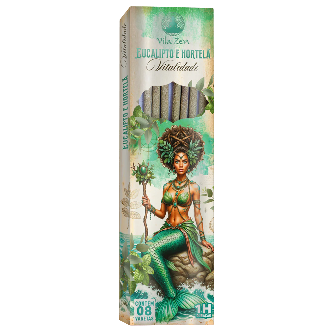 Com mergulho em águas cristalinas, o incenso Eucalipto e Hortelã purifica e restaura. Seu frescor revigorante traz clareza mental e vigor físico, renovando as energias e limpando o ambiente de impurezas. É o sopro e a mente para a vida em sua forma mais plena, revitalizando cada respiração com pureza e força.
