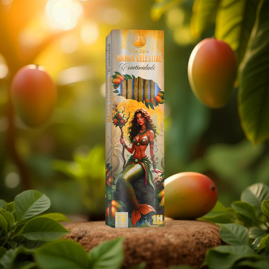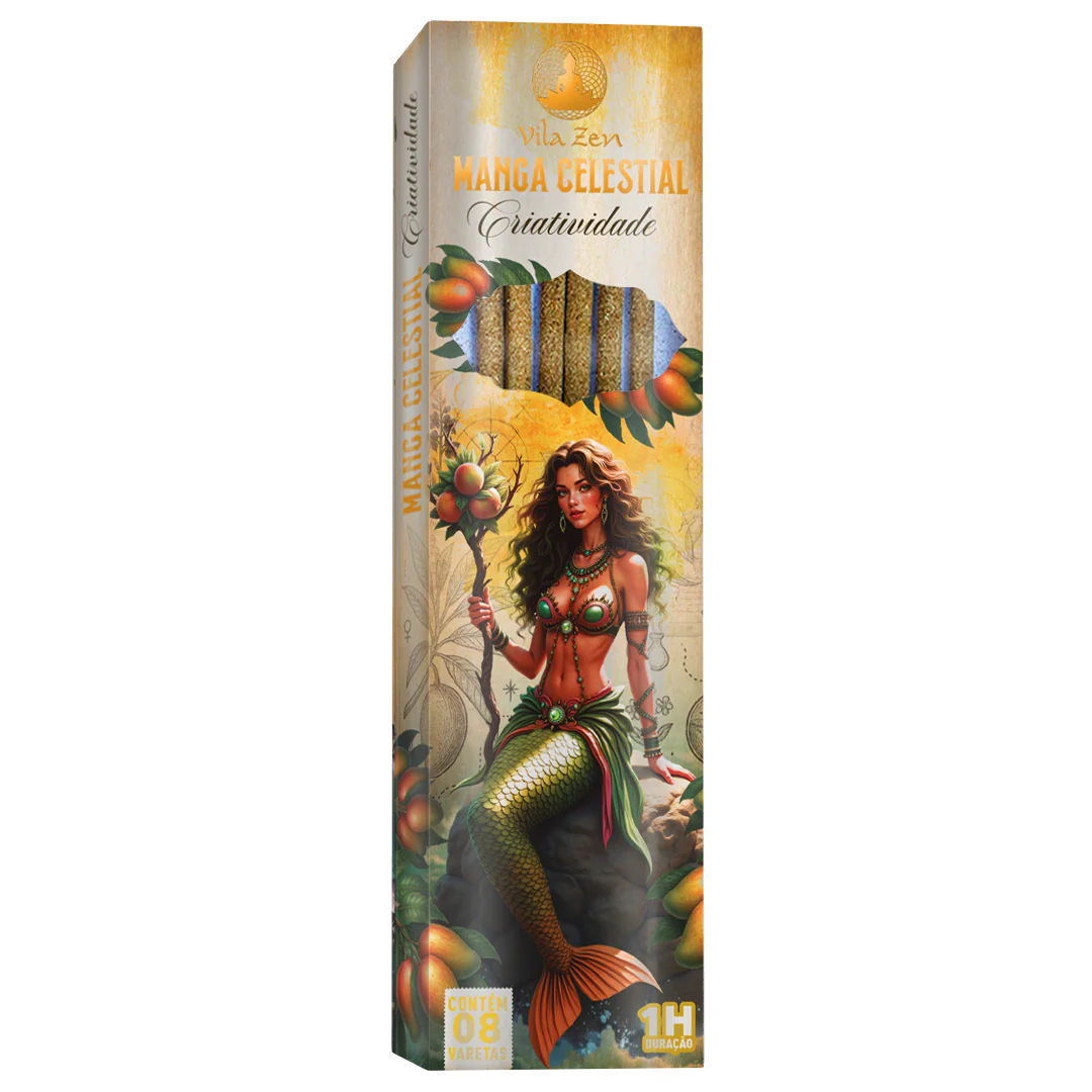 O incenso Manga Celestial abre porta para a imaginação e o despertar de novas ideias. Sua fragrância doce e iluminada conecta com os segredos guardados pelas sereias, trazendo inspiração para criar, sonhar e se reinventar. Cada sopro aromático é como um raio dourado que guia a mente para horizontes inexplorados, alimentando a criatividade que transforma.