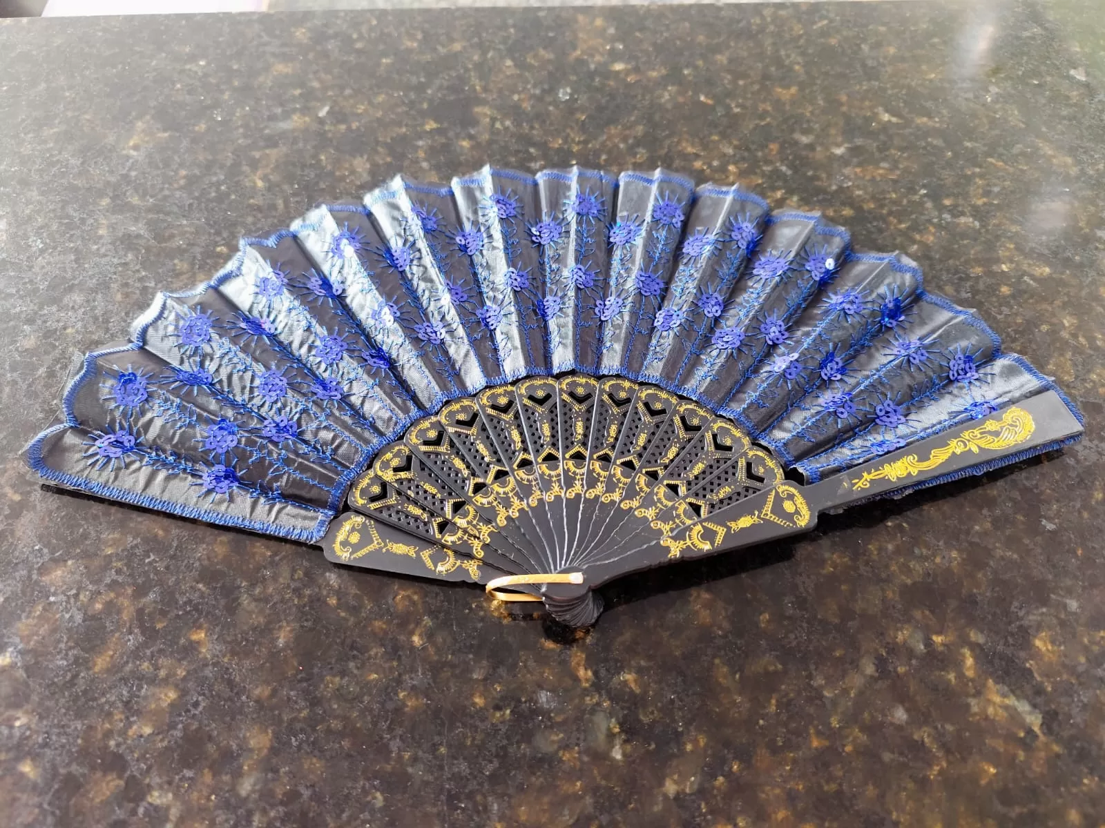 O leque de plástico e tecido, é uma peça elegante e funcional, projetada para proporcionar alívio durante dias quentes e também para adicionar um toque de estilo em eventos formais ou casuais. Este leque é uma combinação harmoniosa de matérias duráveis e esteticamente agradáveis.