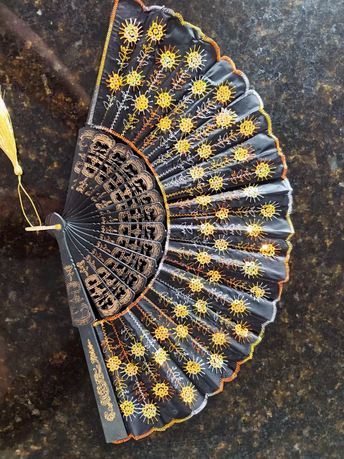 O leque de plástico e tecido, é uma peça elegante e funcional, projetada para proporcionar alívio durante dias quentes e também para adicionar um toque de estilo em eventos formais ou casuais. Este leque é uma combinação harmoniosa de matérias duráveis e esteticamente agradáveis.