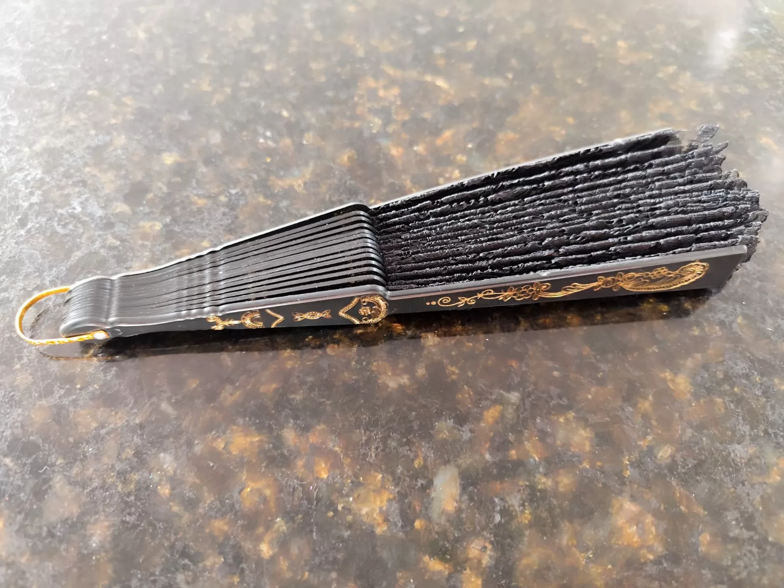 Comprimento aberto: 42cm. Altura: 23cm. Peso: 50gramas.