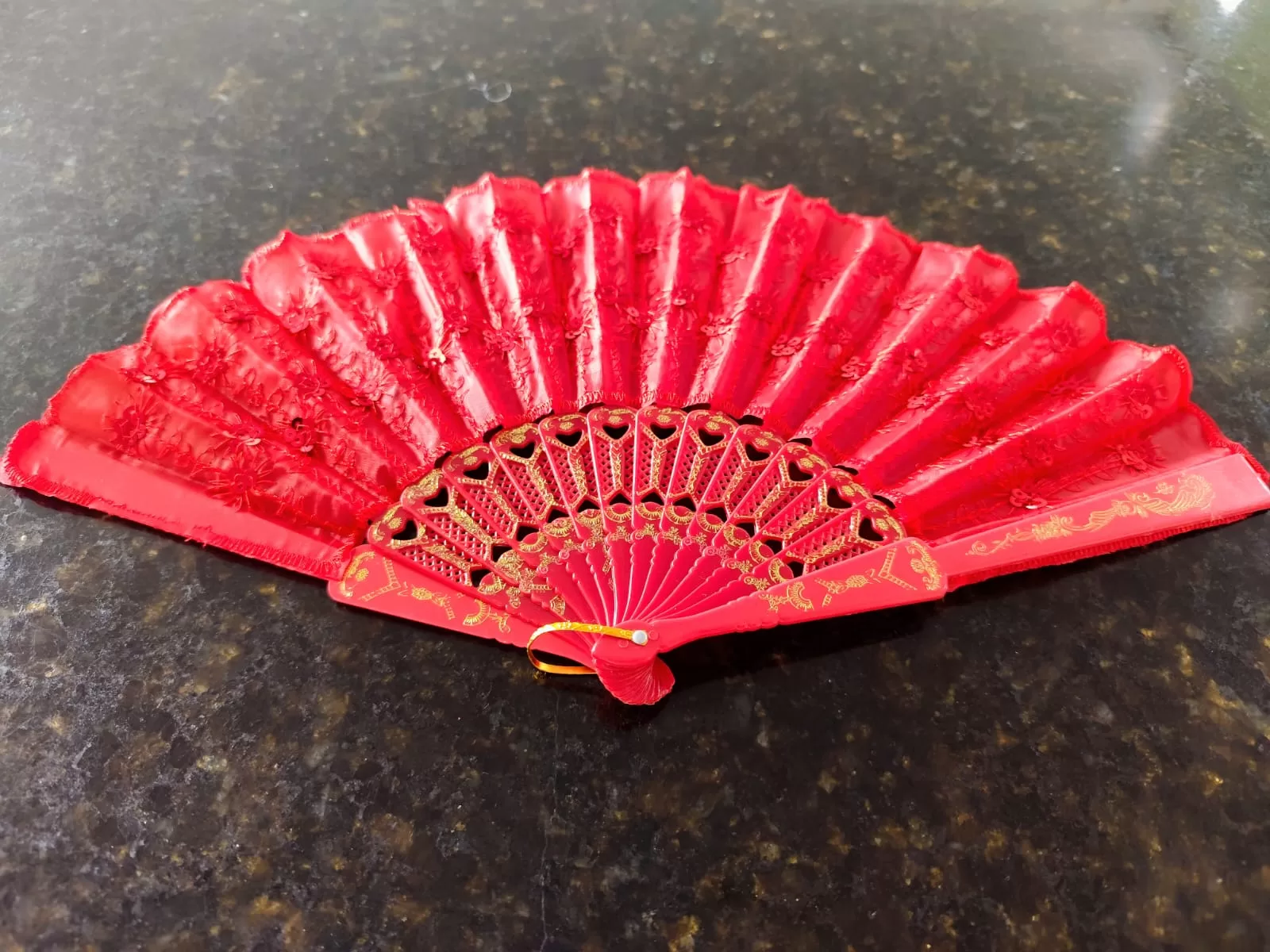 O leque de plástico e tecido, é uma peça elegante e funcional, projetada para proporcionar alívio durante dias quentes e também para adicionar um toque de estilo em eventos formais ou casuais. Este leque é uma combinação harmoniosa de matérias duráveis e esteticamente agradáveis.