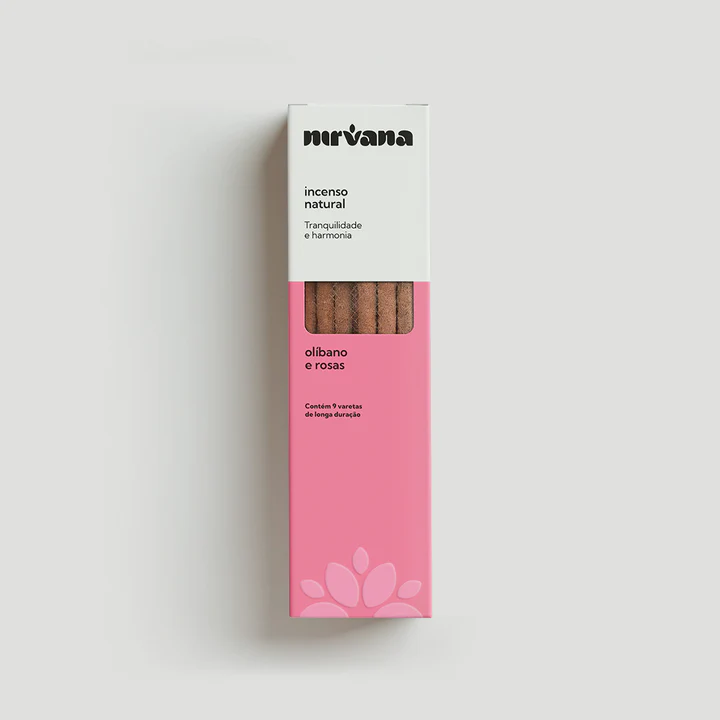 | Composição | Blend terapêutico Nirvana (mix de resinas naturais, ervas, óleos essenciais e especiarias), varetas de bambu, pó de madeira, aglutinante, fragrância de Olíbano e rosas. |