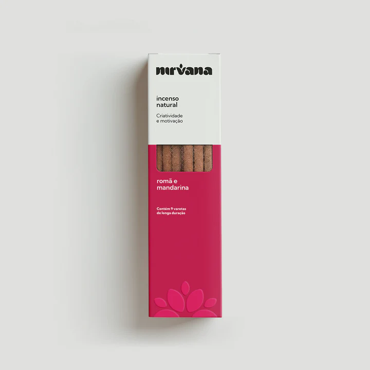 | Composição | Blend terapêutico Nirvana (mix de resinas naturais, ervas, óleos essenciais e especiarias), varetas de bambu, pó de madeira, aglutinante, fragrância de romã e mandarina. |