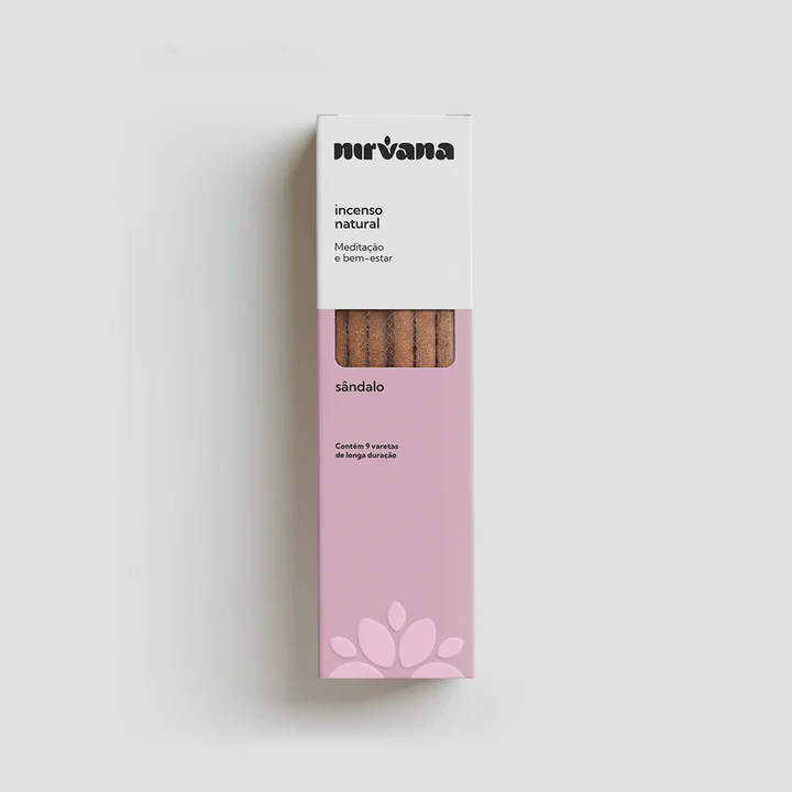 | Composição | Blend terapêutico Nirvana (mix de resinas naturais, ervas, óleos essenciais e especiarias), varetas de bambu, pó de madeira, aglutinante, fragrância de sândalo. |