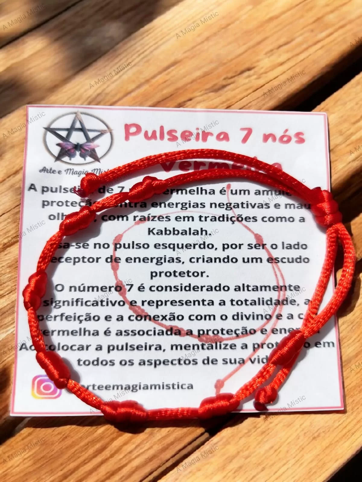 A pulseira de 7 nós vermelha é um amuleto de proteção contra energias negativas e mau olhado, com raízes em tradições como a Kabbalah.