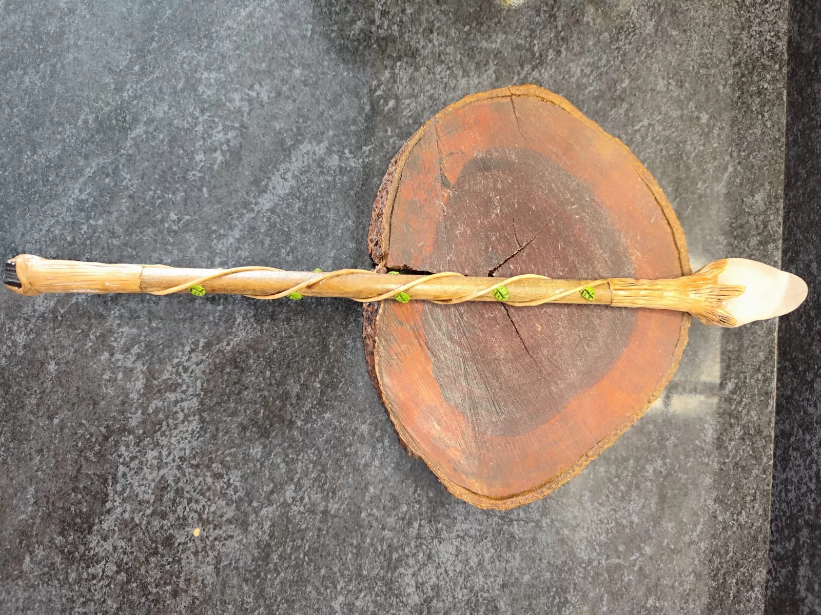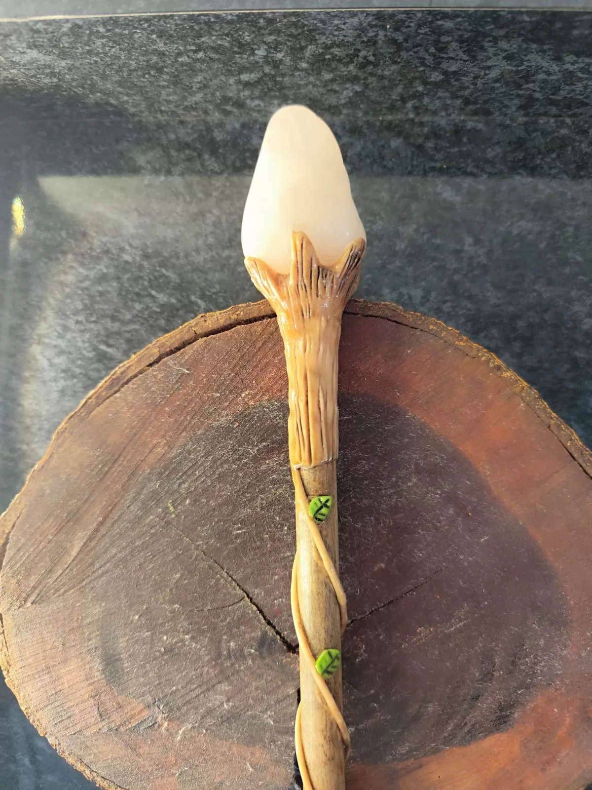 Varinhas mágicas com pedra natural, frequentemente usadas em práticas de Wicca, esoterismo ou para cosplay (bruxas/feiticeiros)