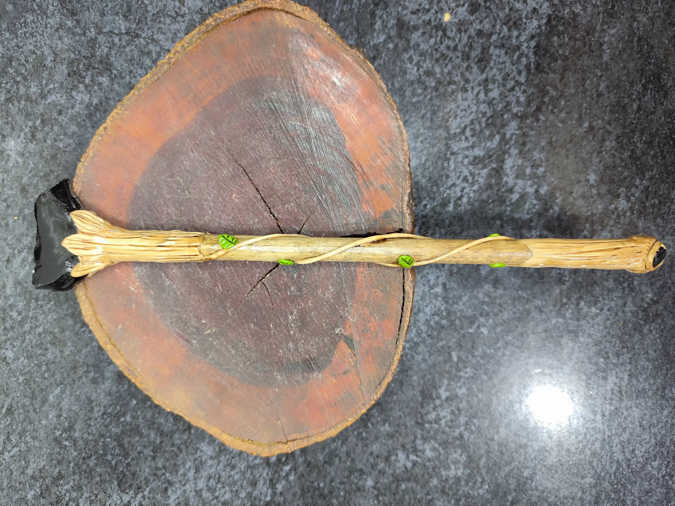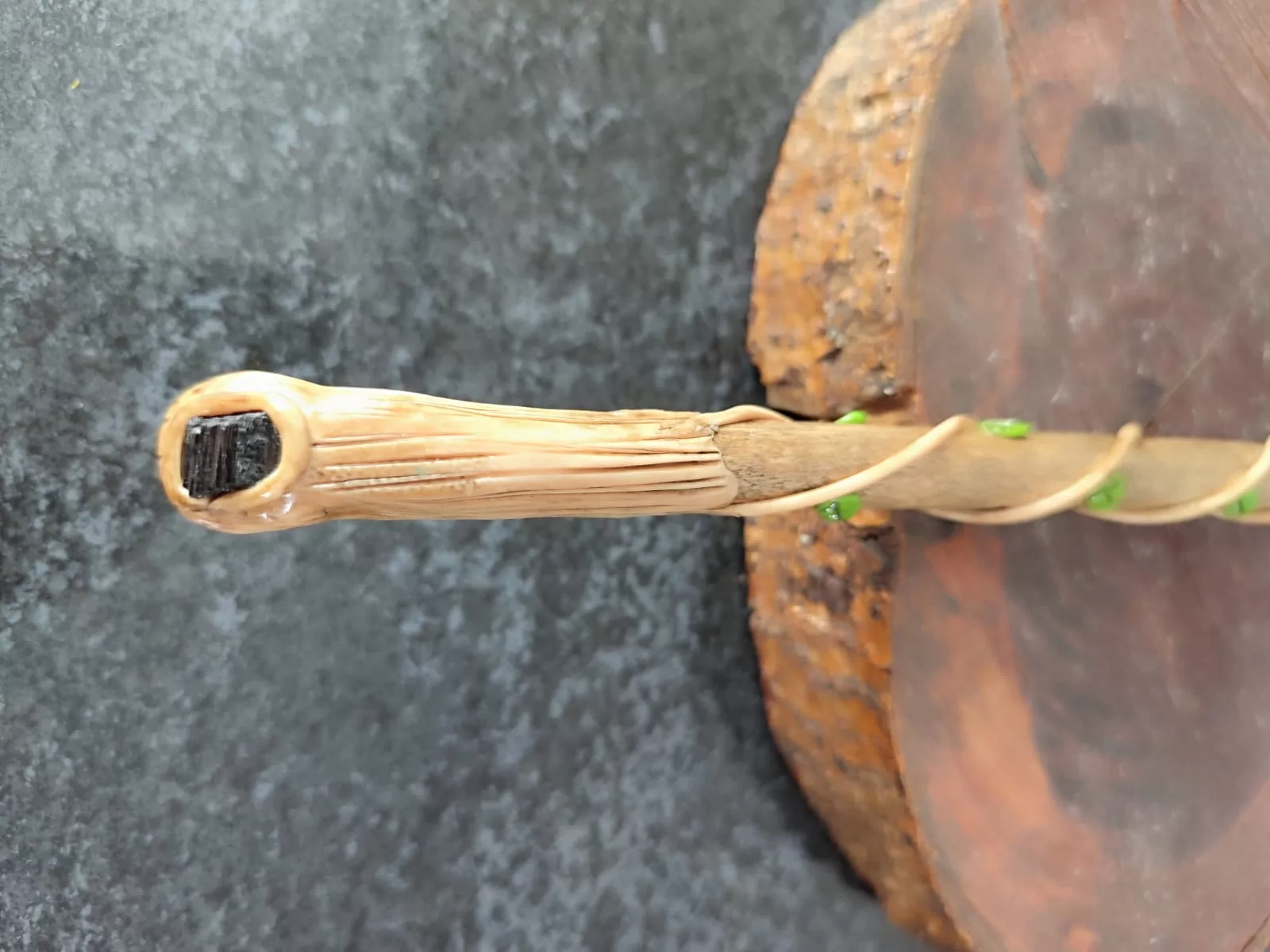 Varinhas mágicas com pedra natural, frequentemente usadas em práticas de Wicca, esoterismo ou para cosplay (bruxas/feiticeiros)